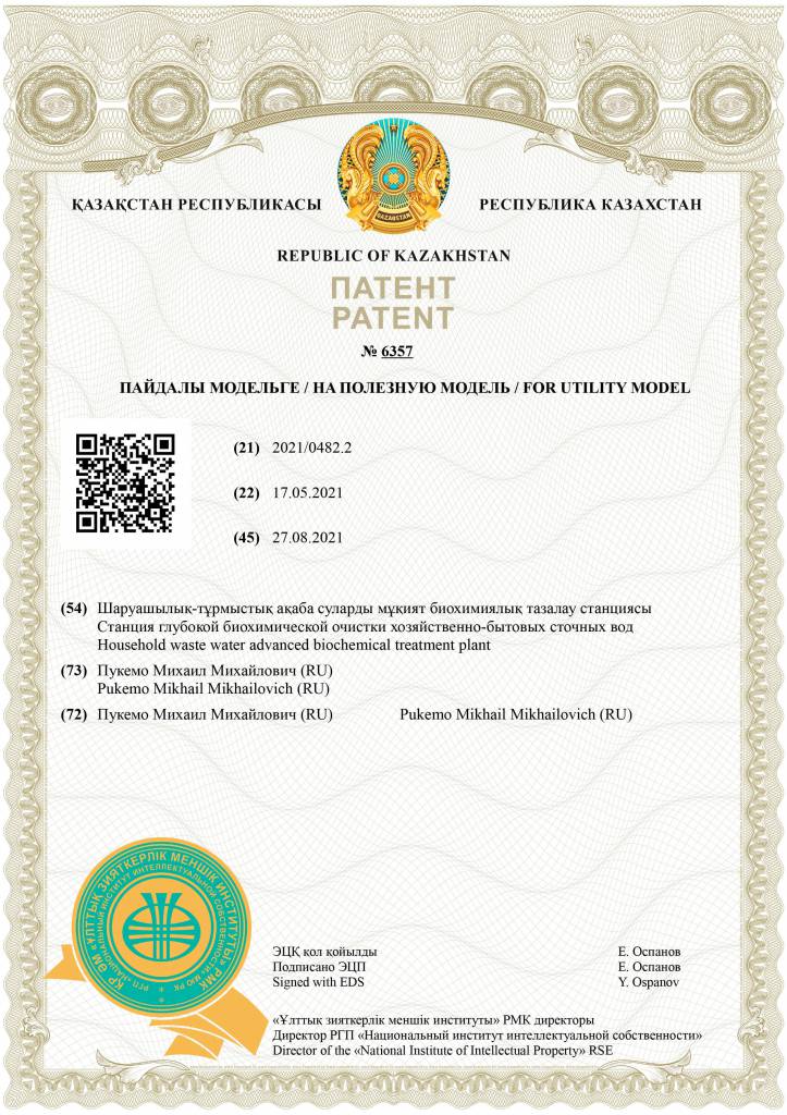 Промышленный сток - 50 м3 в сутки, кондитерская фабрика, Воронежская обл., Хозяйственно-бытовой сток - 50 м3 в сутки, психоневрологический диспансер, Воронежская обл., Хозяйственно-бытовой сток - 50 м3 в сутки, вахтовый посёлок, Республика Казахстан |